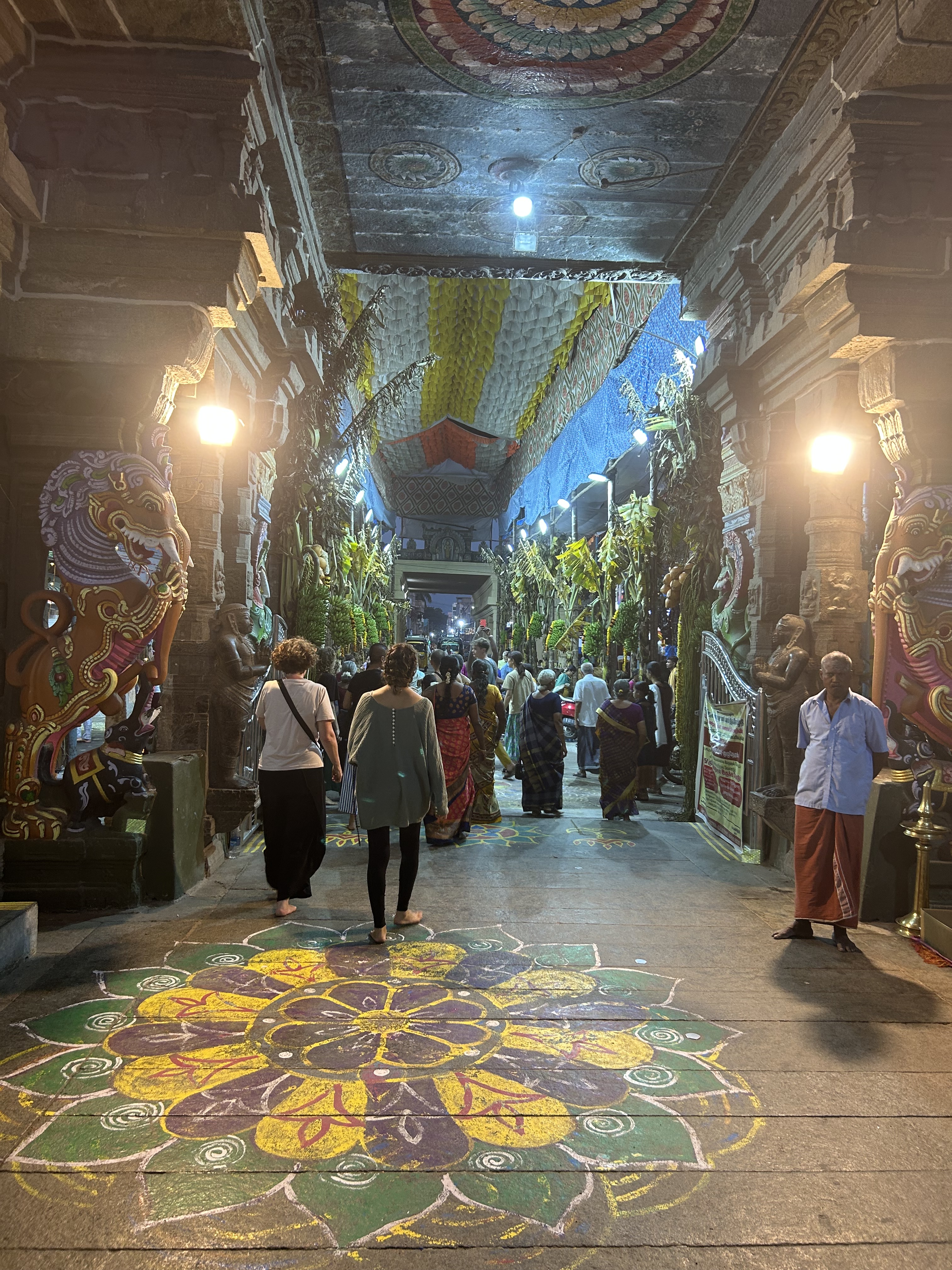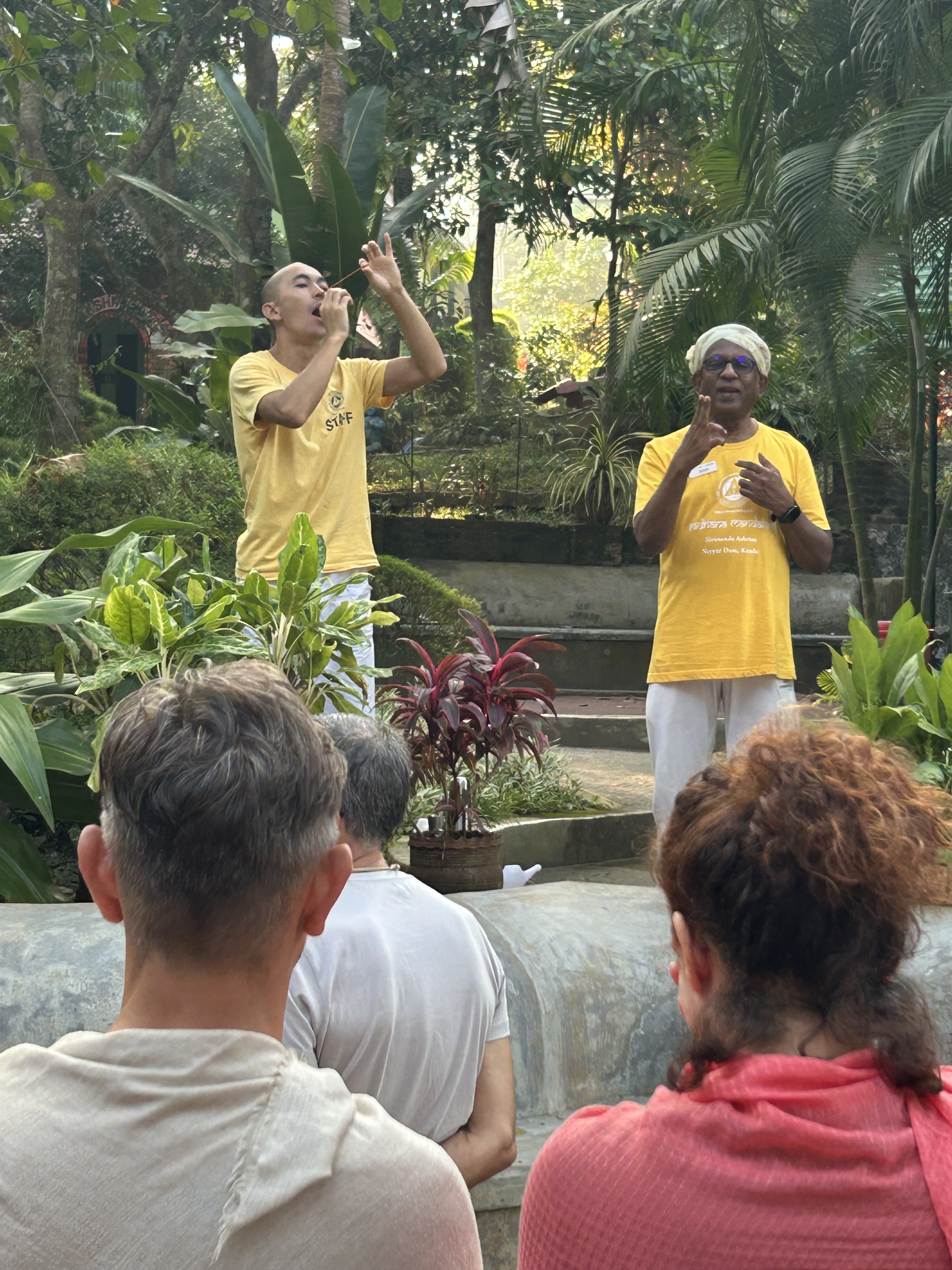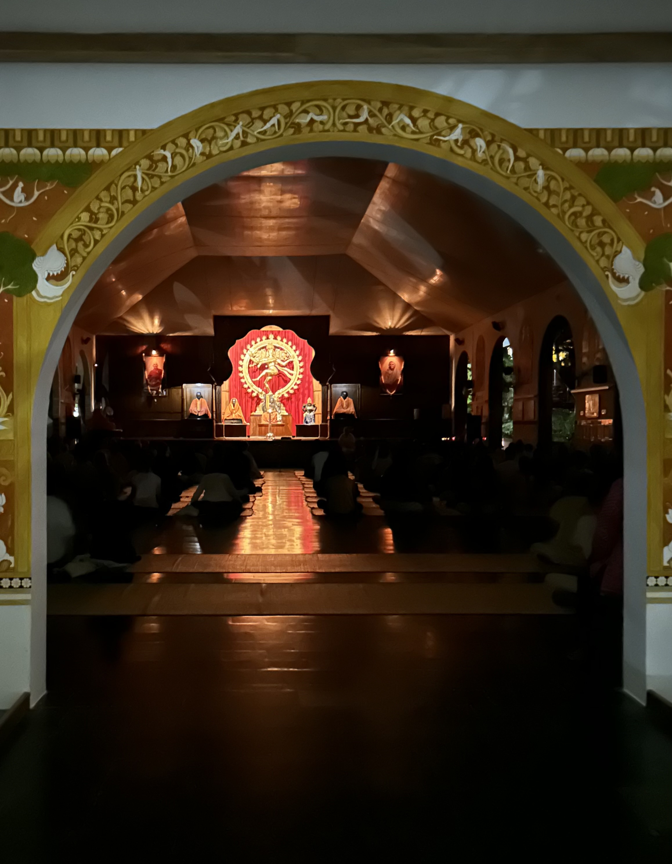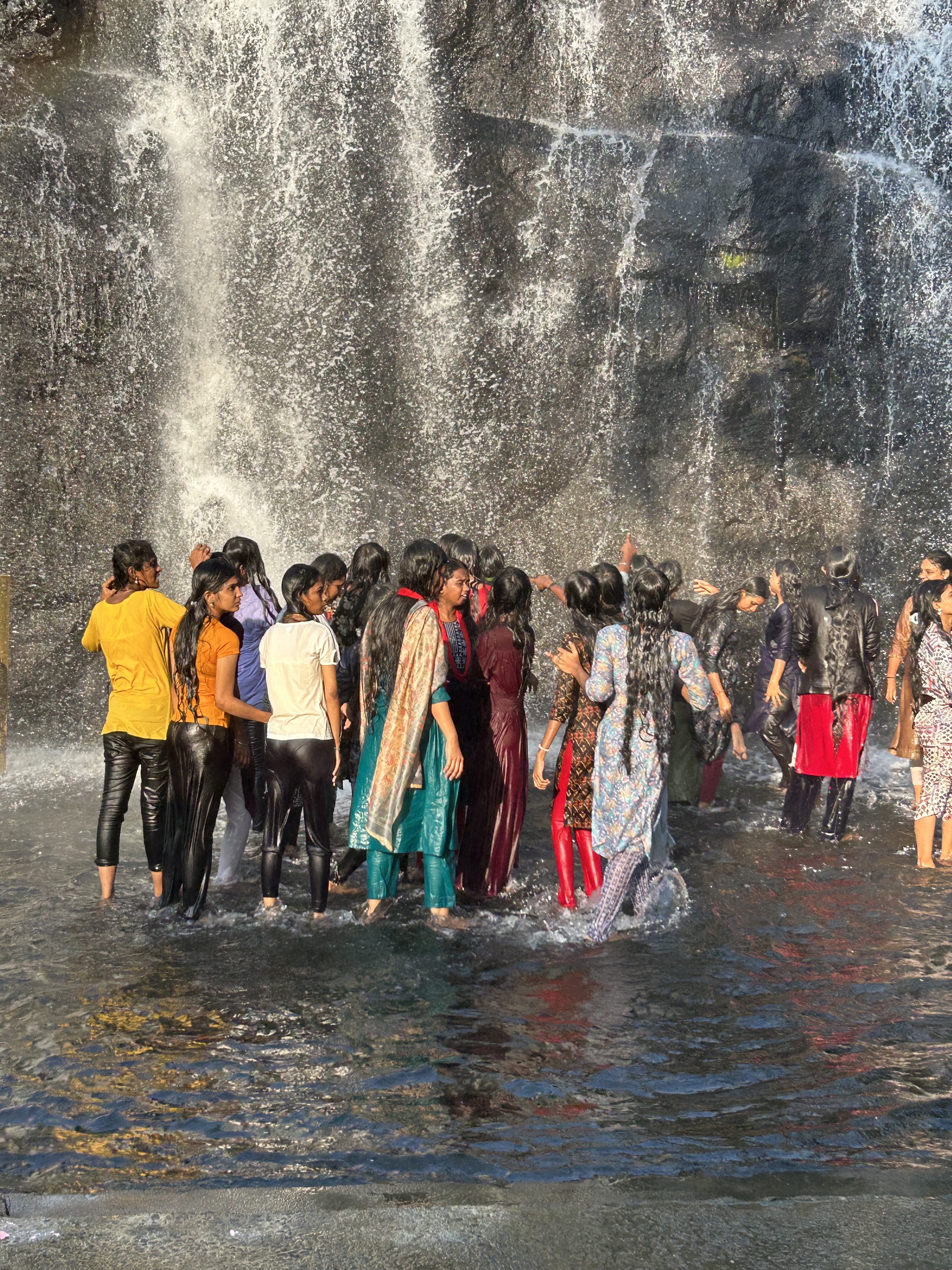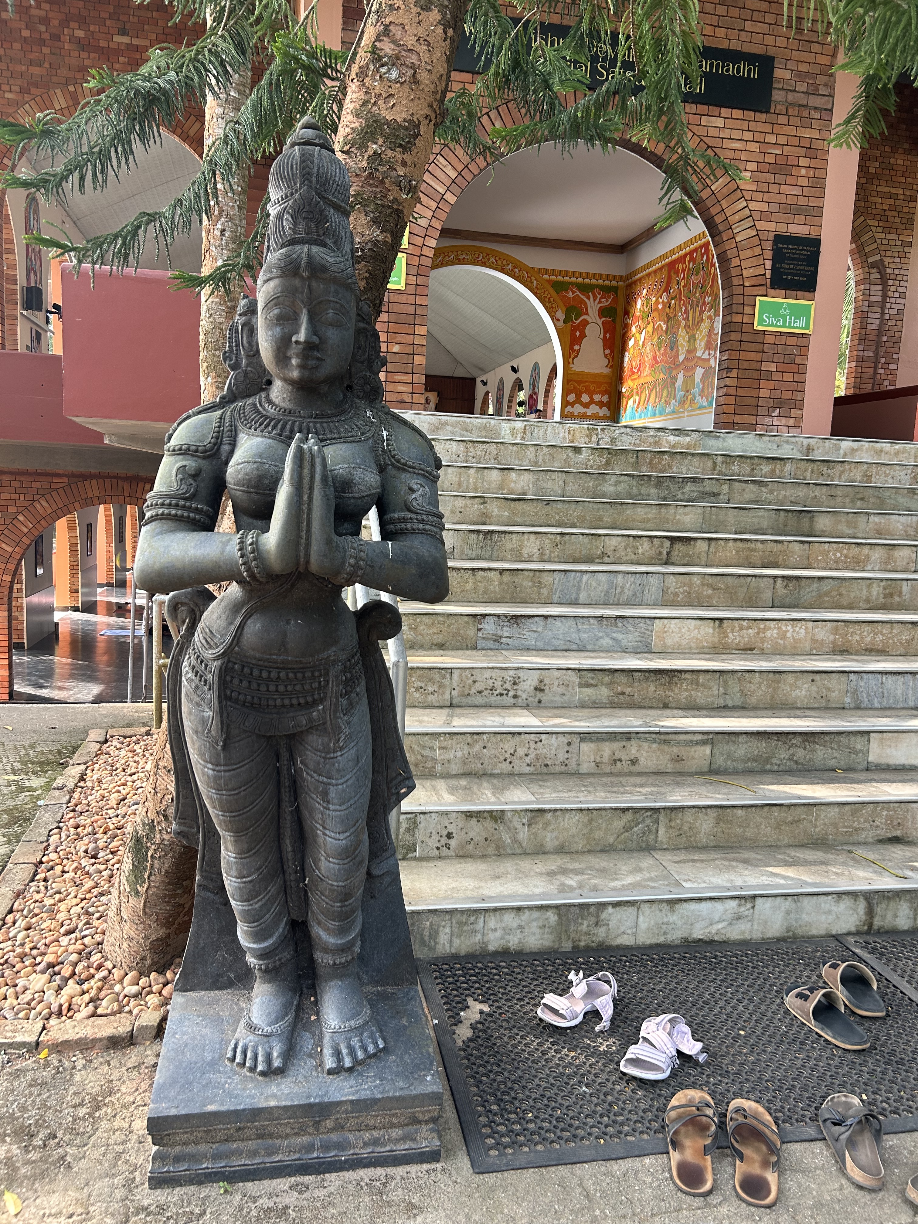 Jag har vistats på ashram där jag bodde i dormitory och övade yoga som gjorde kroppen värkande trött, men också stärkt och vital när det gått några dagar. Tillvaron var strikt schemalagd med två satsanger, två yogapass, två måltider, ett karmayogapass och en föreläsning per dag. Ingen fick lämna området utan särskilt tillstånd – utom på fredagar. En fredag ungefär i mitten av min vistelse, blev det en härlig utflykt med buss till Indiens sydspets Kanyakumari. På vägen dit och tillbaka besökte vi underbara gamla tempel och stannade till vid ett vattenfall där både barn och vuxna roade sig medan några lugnt utförde sina morgonritualer medan de skådade ut över platsen.